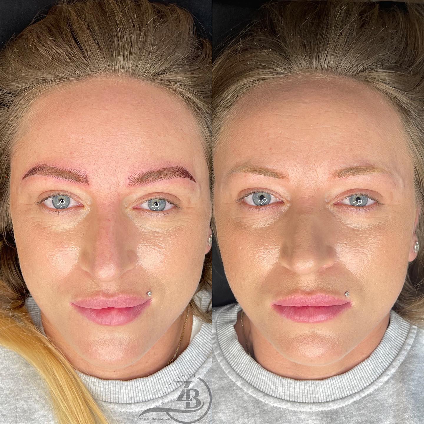 Eyebrow colour correction adjusts existing pigment to neutralise unwanted tones such as grey, blue, red, or orange. Carefully selected pigments are used to rebalance the colour and achieve a natural brown shade suited to your skin tone. Multiple sessions may be required, with colour evolving during the healing process.